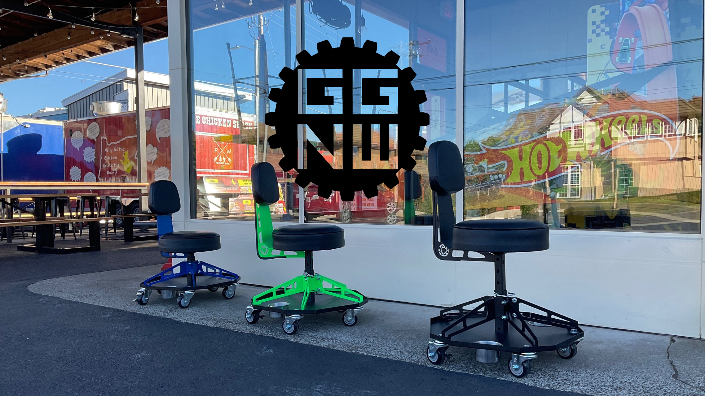 Proudly built in McMinnville, Oregon, every Garage Gear stool is forged from laser-cut, powder-coated steel—no tubing, no weak points. With a wide, rock-solid 23” base and all-metal construction from the casters to the backrest, it’s engineered to take a beating and keep rolling. Durable. Functional. Unapologetically overbuilt.